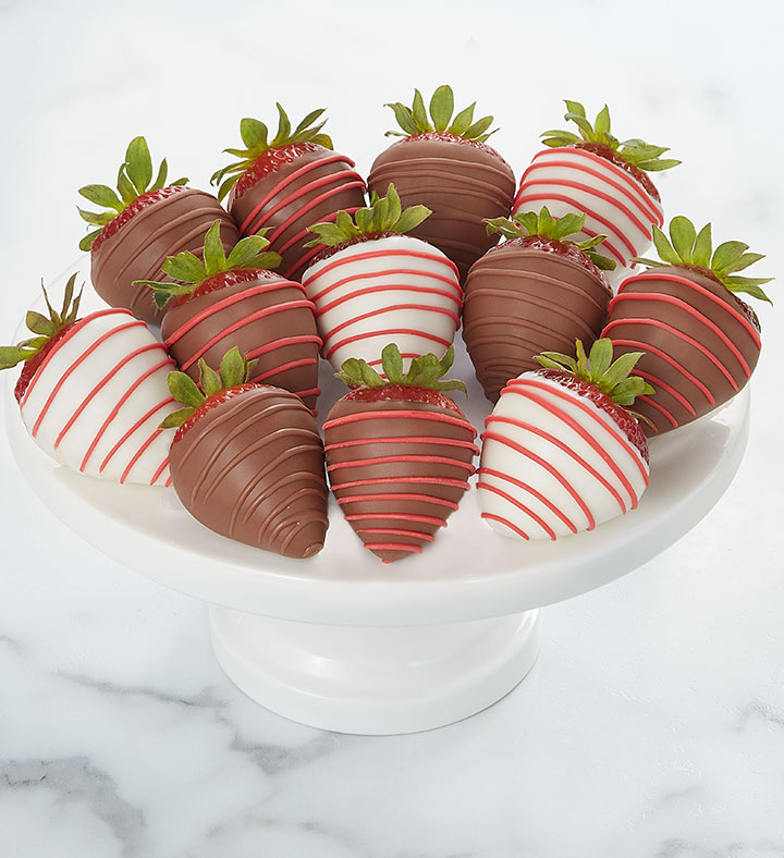 Indulge in the romance. One dozen of our plump, juicy strawberries are dipped and drizzled to perfection, then delivered to the one you love. Available in two sizes, it’s a sweet surprise for savoring…and sharing.